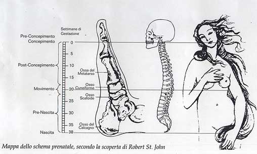 Per esempio, sulla pianta del piede sono riflessi gli organi presenti nel corpo. Se una parte del piede è dolente, è possibile sapere quale o quali organi essa riflette. Inoltre essa ha delle corrispondenze con una fase precisa della gestazione, e quindi col vissuto relativo a quel periodo.